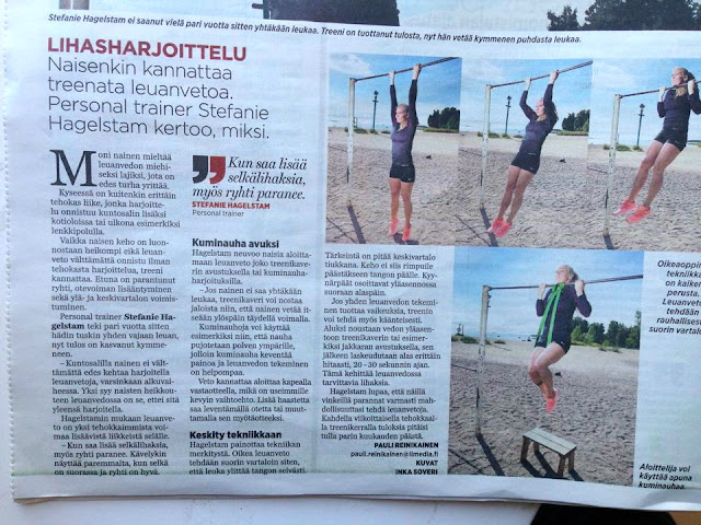 Jännittäviä ja isoja juttuja tapahtuu minulle. Iltalehti pyysi minulta vinkkejä leuanvetoon, ehkä he näkivät tämän postauksen (jonka osa teistä on jo nähnyt) ja huomasi että vinkeistä voisi olla hyötyä muillekkin. Menin mielelläni mukaan leuanvetovideoon ja tästä tehtiin juttu eiliseen iltalehteen ja iltalehden nettisivuille, videomuodossa! Oli uutta olla kuvattavana treenivideossa, mutta pakkohan tähän on tottua kun tällaisia juttuja haluan tulevaisuudessa tehdä enemmän, heheh (: Todella mukavaa olla mukana tällaisissa jutuissa!